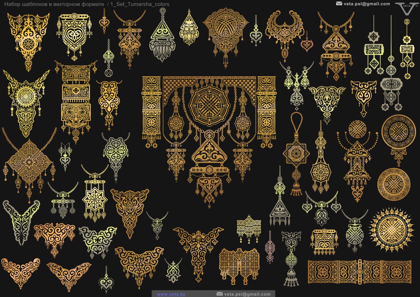 Набор Тұмарша, коллекция орнаментов и казахских украшений для дизайнеров 1_Set_Tumarsha .