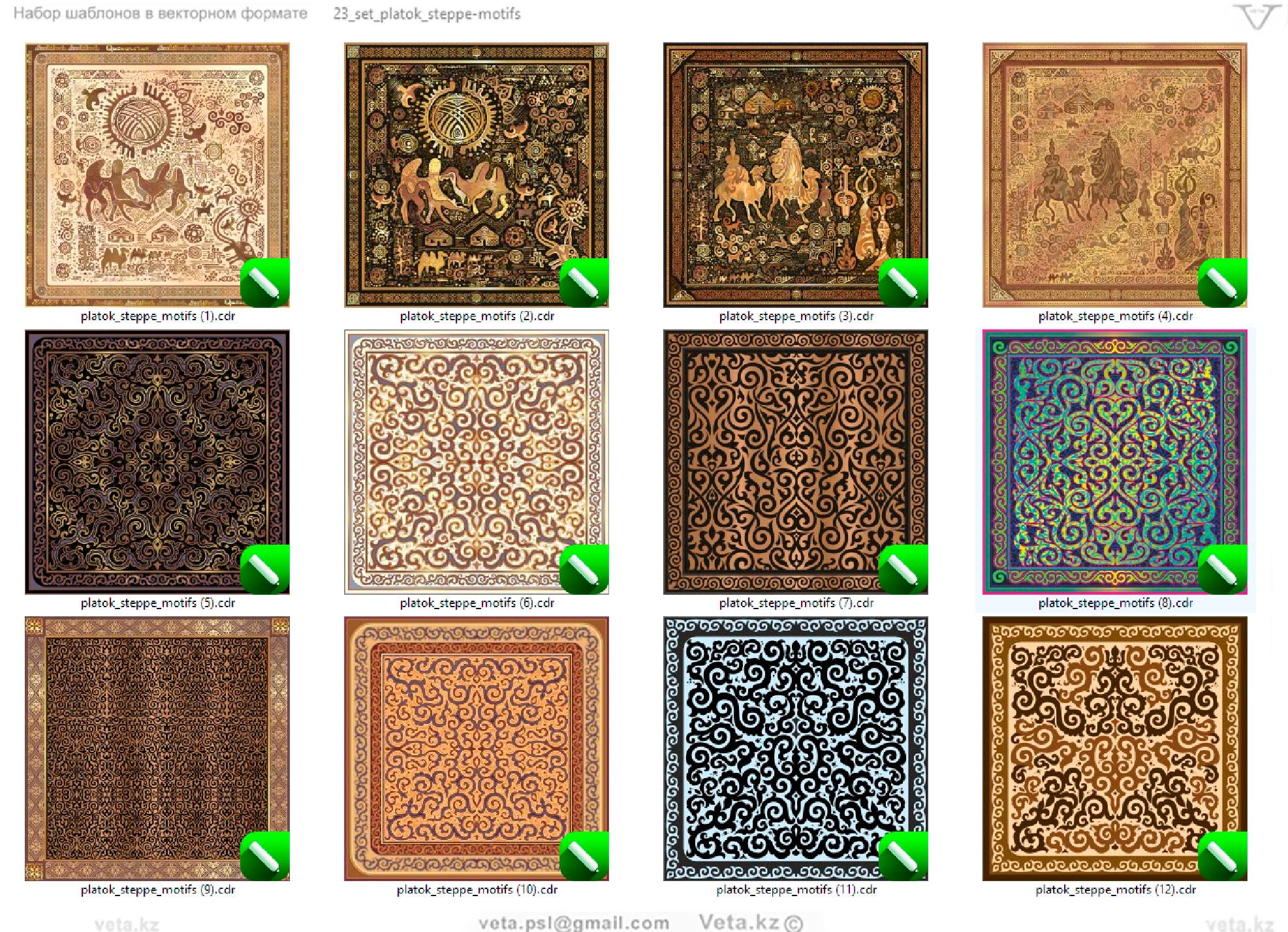 «Набор Степные мотивы / Steppe Motifs — это коллекция из 12 авторских шаблонов в различных цветовых вариациях.